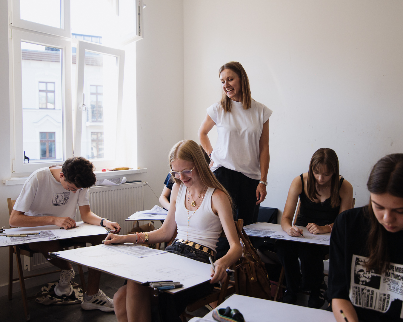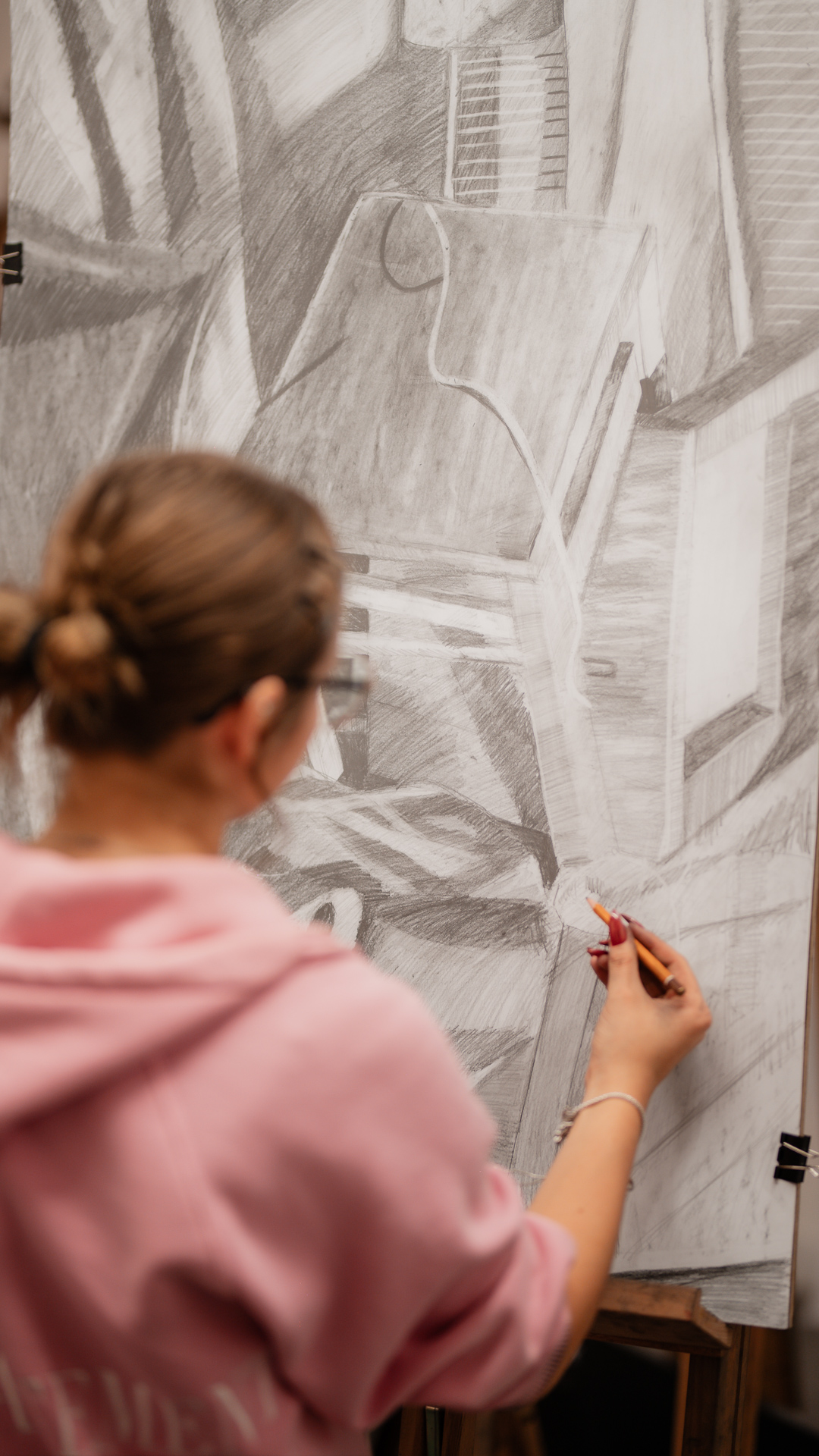 Akademia rysunku RA to nie tylko szkoła w centrum kipiącego życiem miasta. To miejsce, które daje czas – na eksperymentowanie, poznawanie własnych możliwości i odnajdywanie talentów, ufanie pomysłom i budowanie własnego języka. Mamy przestrzeń na rozmowę, korektę i wymianę sugestii, na dyskusję, wsparcie i budowanie relacji. Czego możesz oczekiwać? Ogromnej dawki wiedzy i doświadczenia, długich sesji w pracowni i plenerowych akcji, które uczą patrzeć na świat z innej perspektywy. Zamiast jednej ścieżki – mapy możliwości. Pomagamy przygotować się do egzaminów, ale też zachęcamy, by tworzyć dla siebie – z pasją, z uważnością i radością. Wierzymy, że szkoła rysunku jest jak żywa, twórcza przestrzeń – powinna uczyć nie tylko techniki, ale i odwagi.