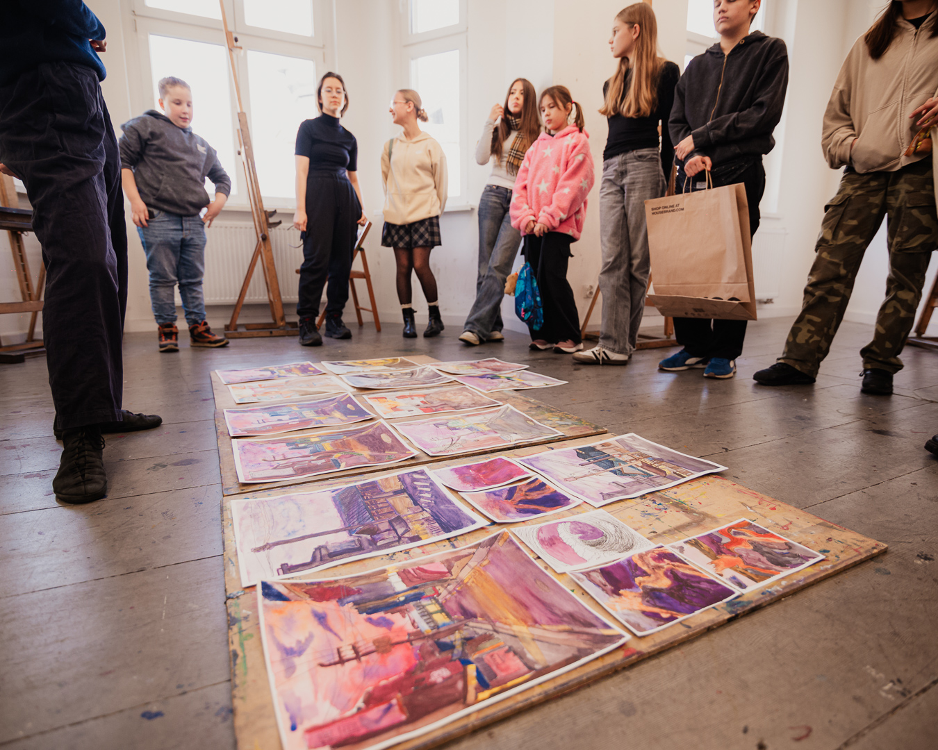 Poczujesz się u nas jak w prawdziwym atelier mistrza! Razem będziemy tworzyć przy stołach, a kiedy poczujemy artystyczny rozmach – staniemy przy profesjonalnych sztalugach, zupełnie jak słynni malarze sprzed lat.