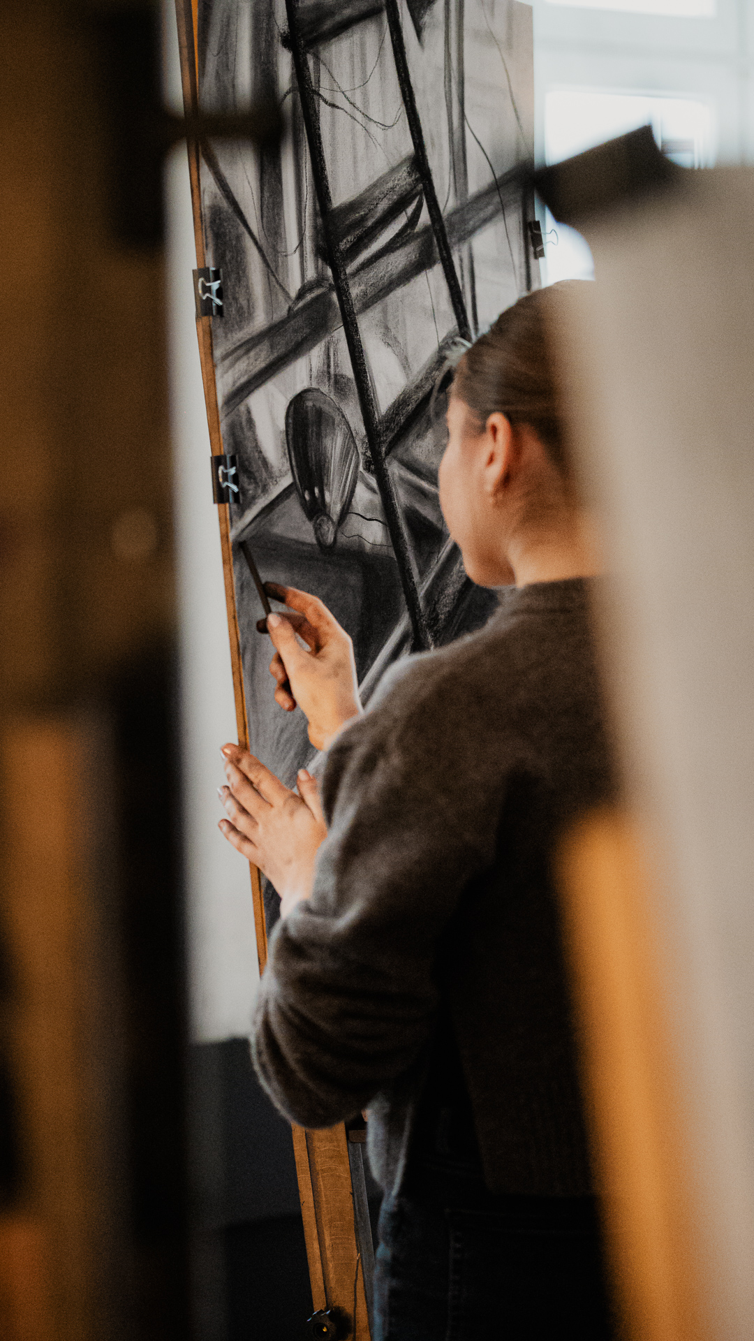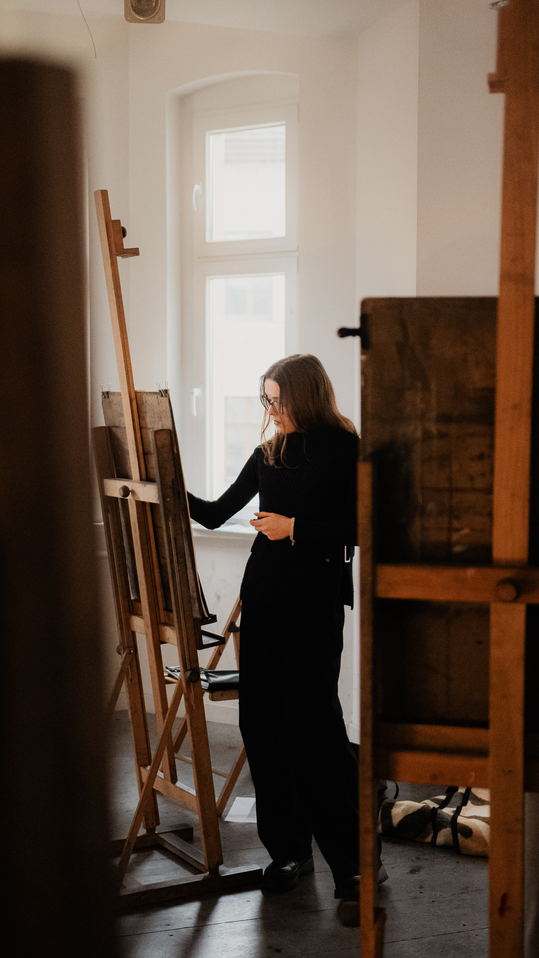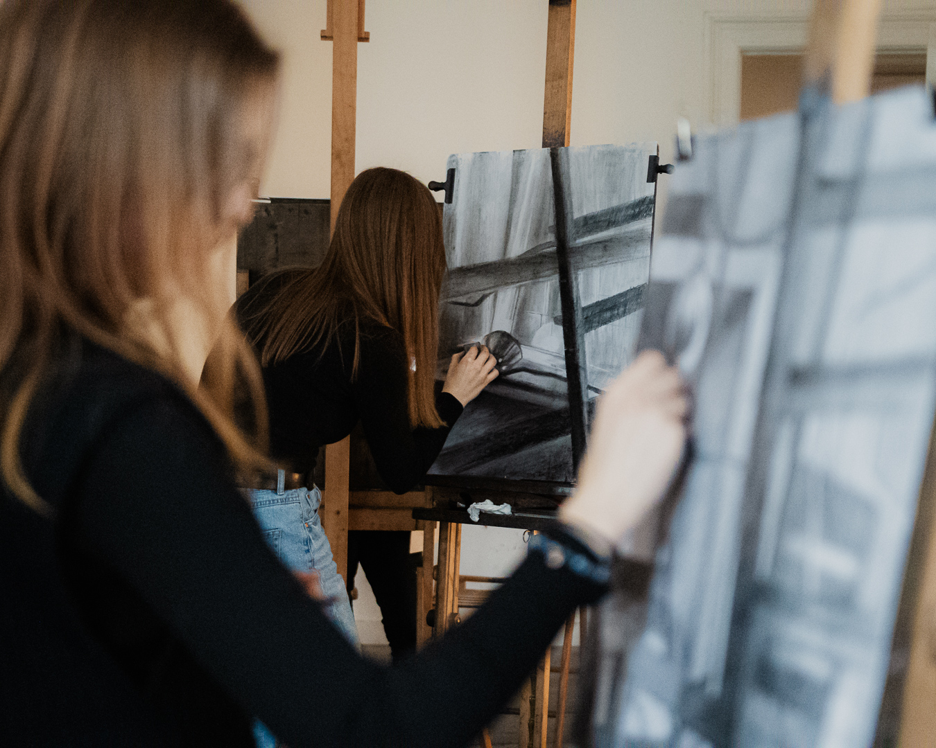 oraz na sztalugach – w zależności od etapu pracy i wybranej techniki.